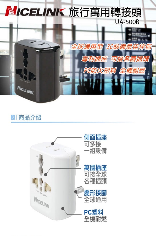 萬用插孔設計,可適用世界各國電器設備
