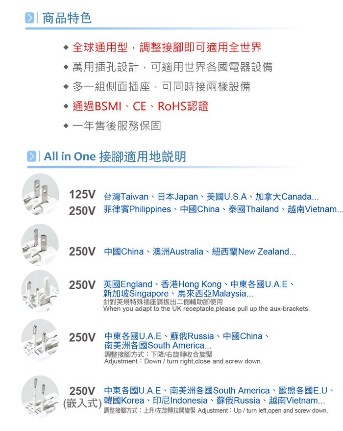 全球通用型,調整接腳即可適用全世界