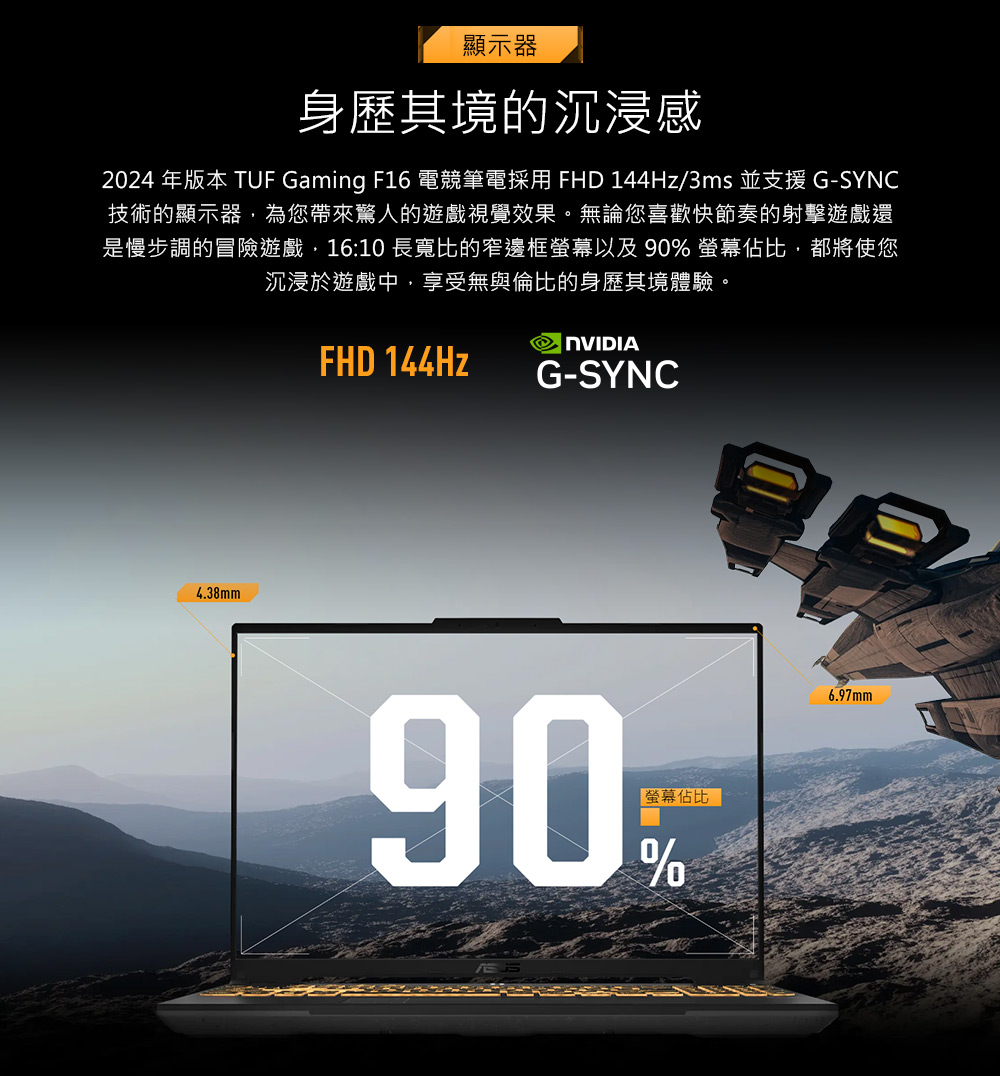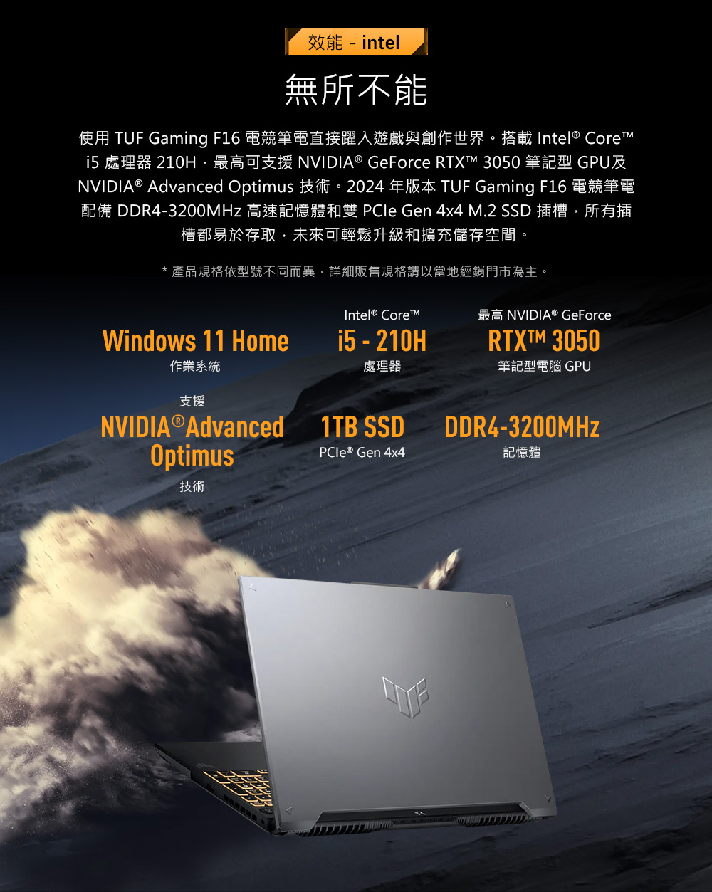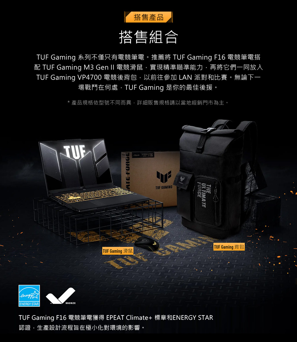 薄邊框/附TUF電競滑鼠/單區RGB多彩鍵盤